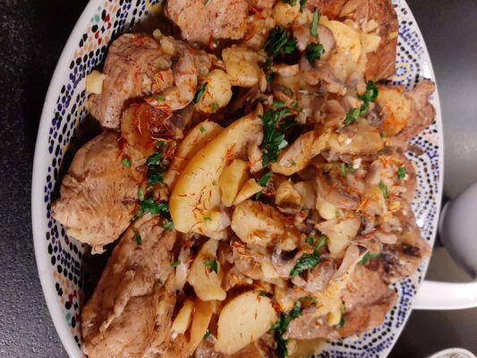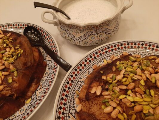 Hauptgericht: Maklube – Scharhat Schasch Mtafahe – Uzi – Bamie.